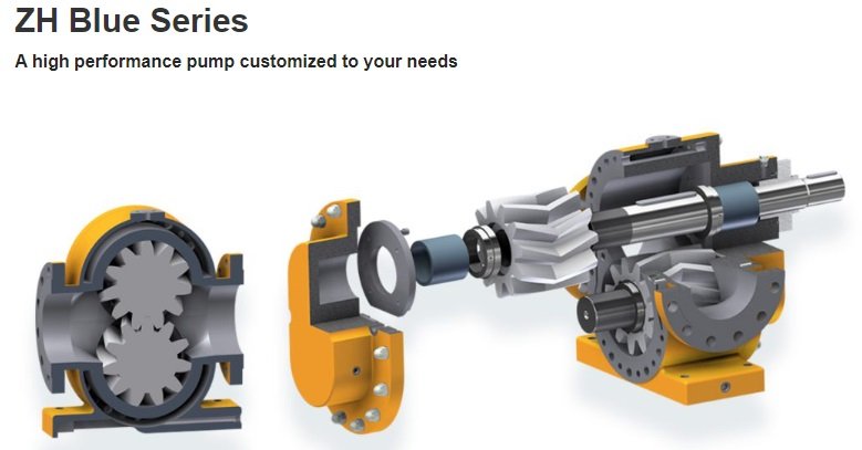 are self-priming, non-pulsating and reversible pumps that work best on clean, lubricating fluids with a viscosity thicker than water. Two gear teeth, one idler and one driver, mesh together to transfer the liquid. Because of the balanced construction and bearings on both sides of the shafts, the pumps are capable of non-pulsating flow and high pressures.